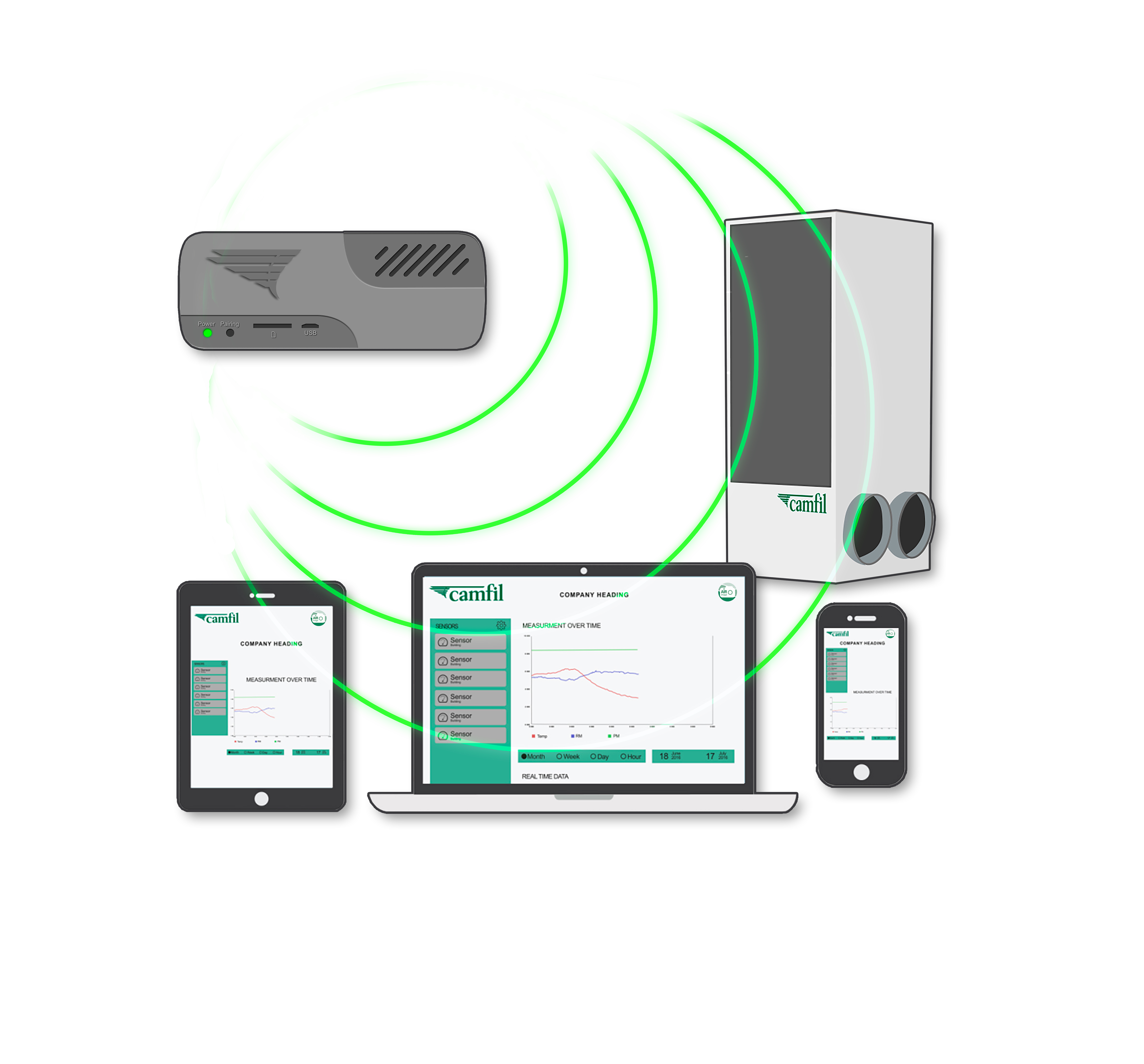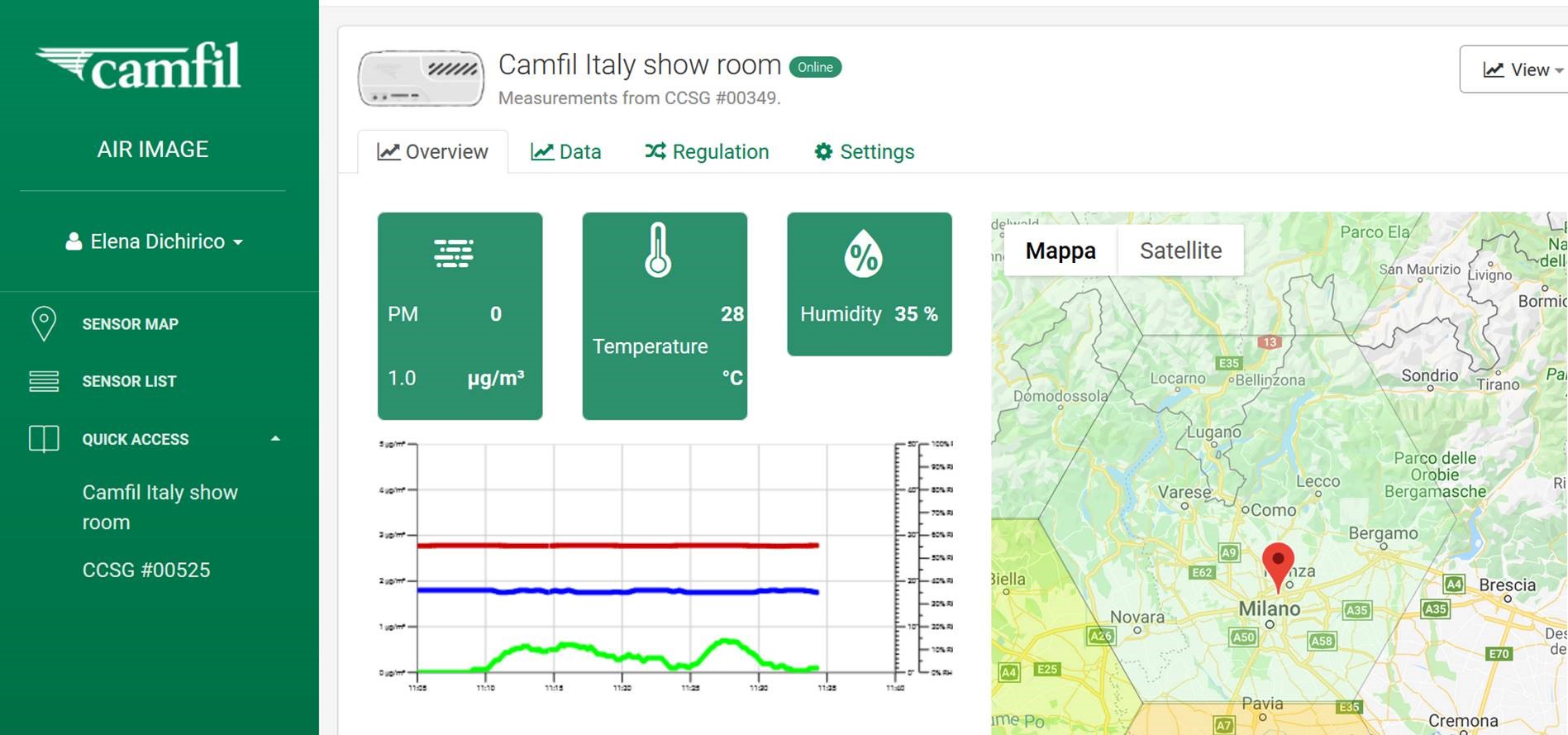 Camfil’s intelligent sensor system for Air Cleaners, is a patented Camfil technology for monitoring, controlling indoor air quality and energy consumption - by raising and lowering the operating level of your Air Cleaners, depending on the amount of particles in the air. Air Image tool shows the IAQ values connected to energy and have a three party communication: